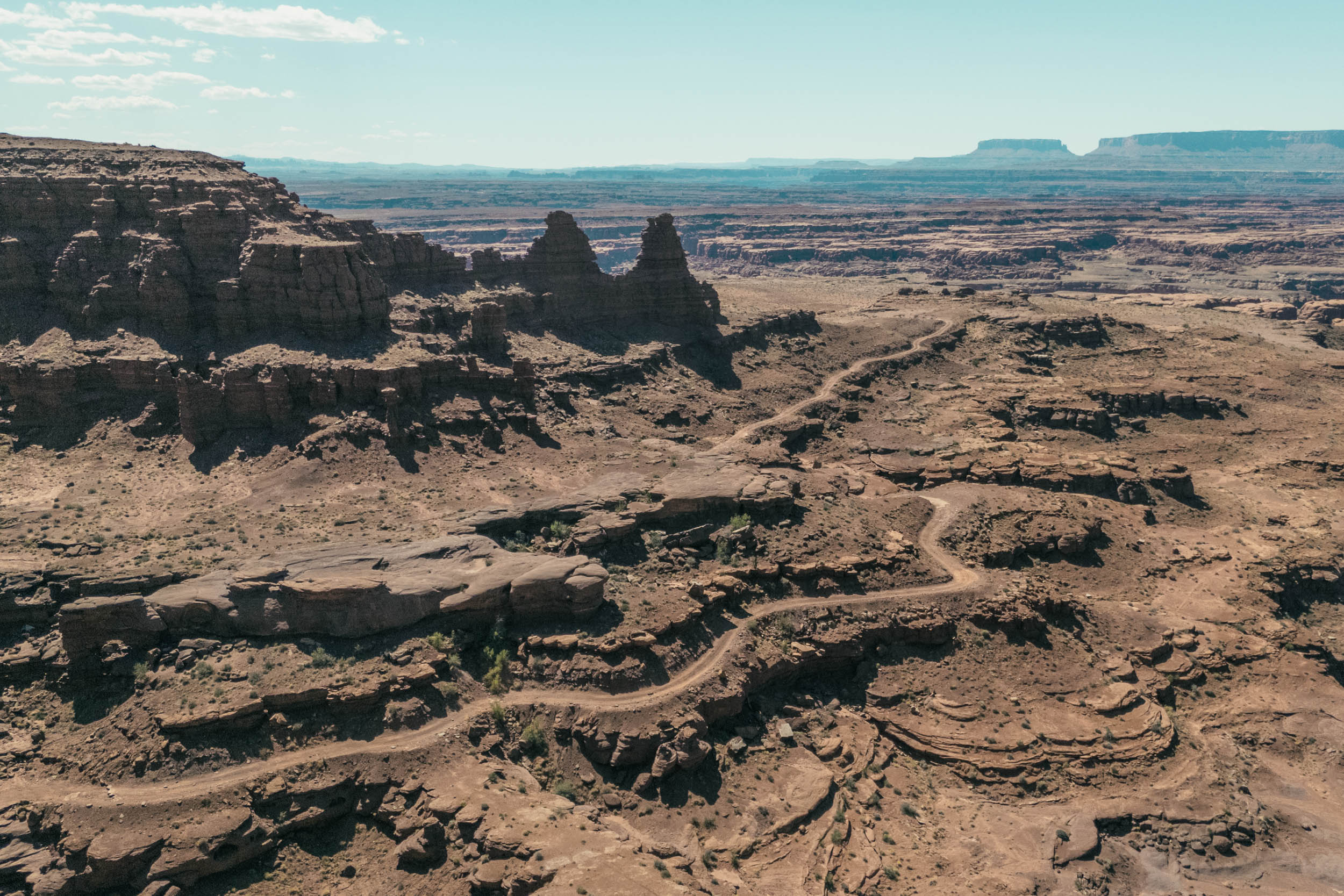 Moab is a cute small town surrounded by outdoor activity possibilities, such as mountaineering, rock climbing, canoeing, and world-class mountain biking, so there’s no shortage of interesting people around. Or good beer. My five-day stay here leads me to find an intriguing dashed line across Lockhart Basin headed south, then a potential resupply in the Needles District of Canyonlands National Park, heading out again through another interesting dashed line across Bears Ears East, ending with the Valley of the Gods loop and town of Mexican Hat. It seems like I found a trifecta of highway alternatives and a rather challenging yet potentially rewarding Utah adventure I’ve been so thirsty for. No pun intended.