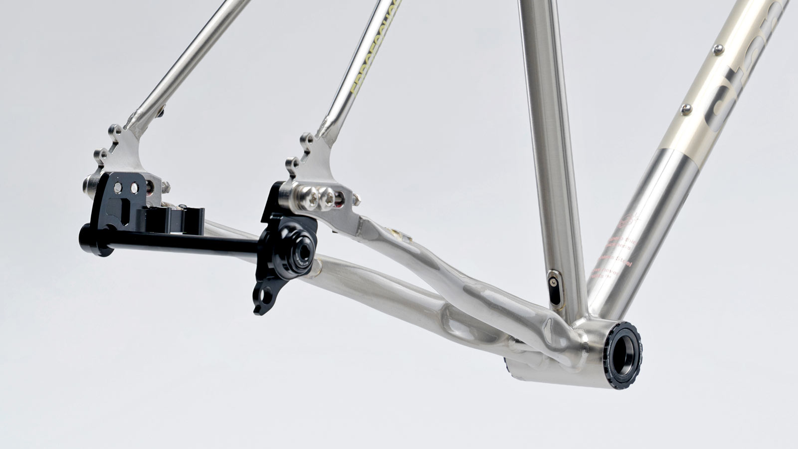 The trick with sliding dropouts is their modularity. Pop in a new alloy dropout insert, and you can swap from traditional derailleurs to internally geared hubs to a singlespeed setup. And you can even swap axle standards and brake mounts when done right, making sliding dropout bikes quite future-proof.