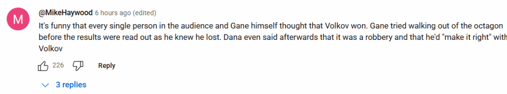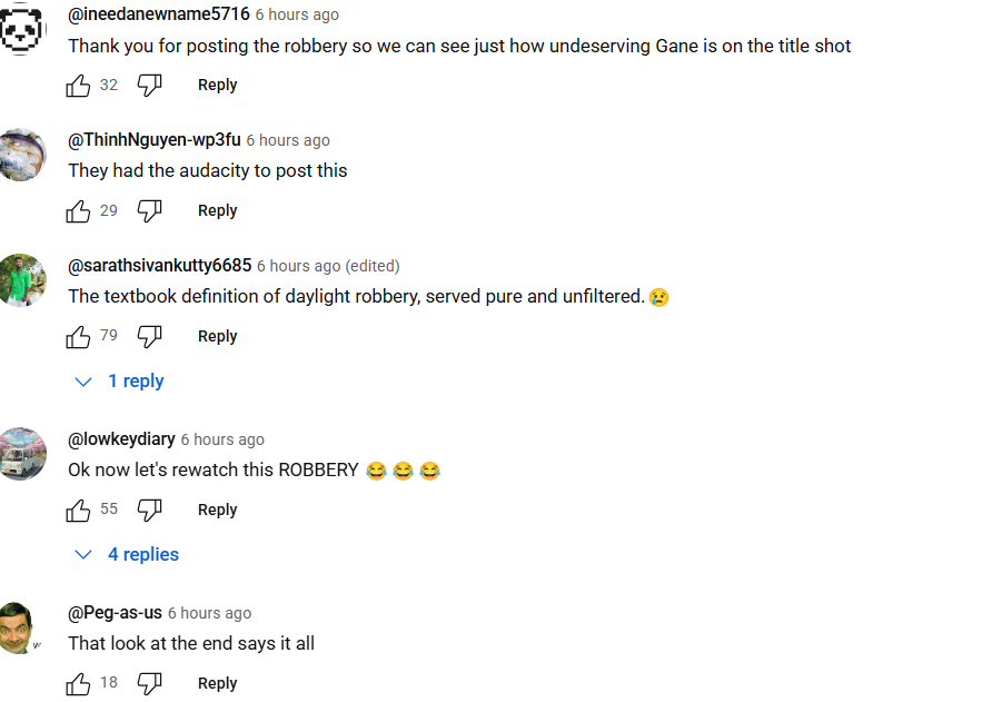 The public response to the UFC’s decision to upload the full fight speaks volumes. The comment section is overwhelmingly negative, serving as a clear reminder that Gane is only fighting Tom Aspinall for the undisputed title because of either sheer inaptitude or possible corruption. It’s unacceptable, and it certainly shouldn’t be rewarded.